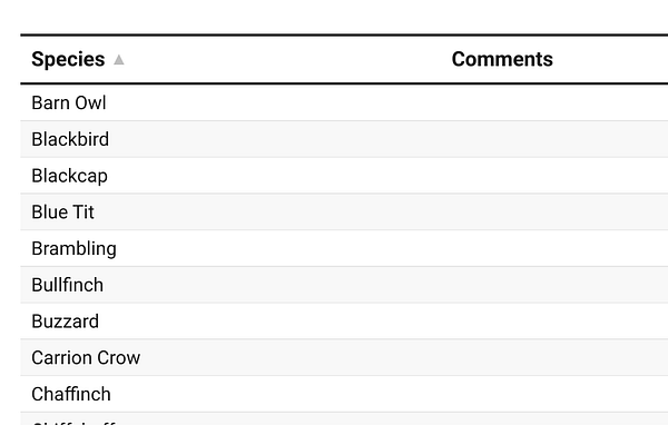 Lists of wildlife seen at the reserve from sightings records